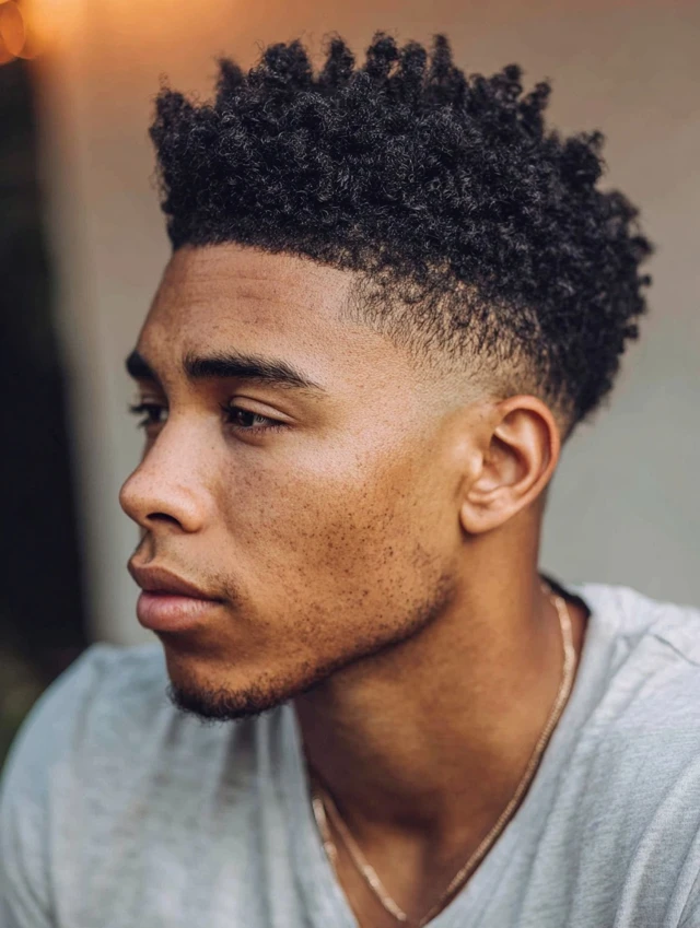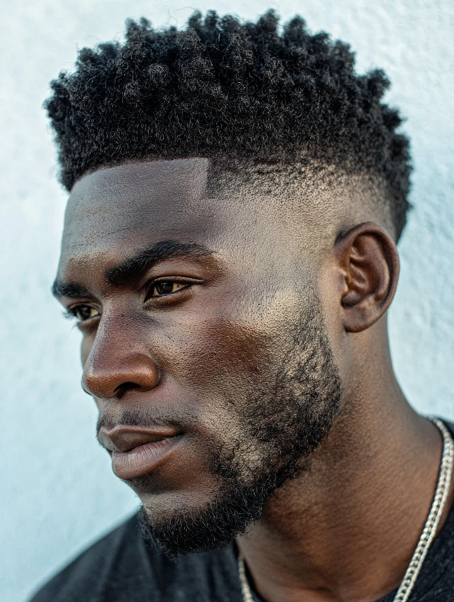 A shorter Afro is easy to maintain and pairs perfectly with a crisp shape-up for a clean, modern finish.