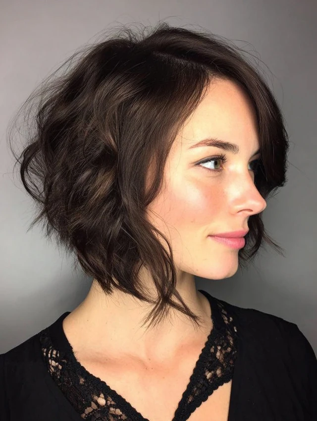 2. Wavy or Textured Asymmetrical Bob