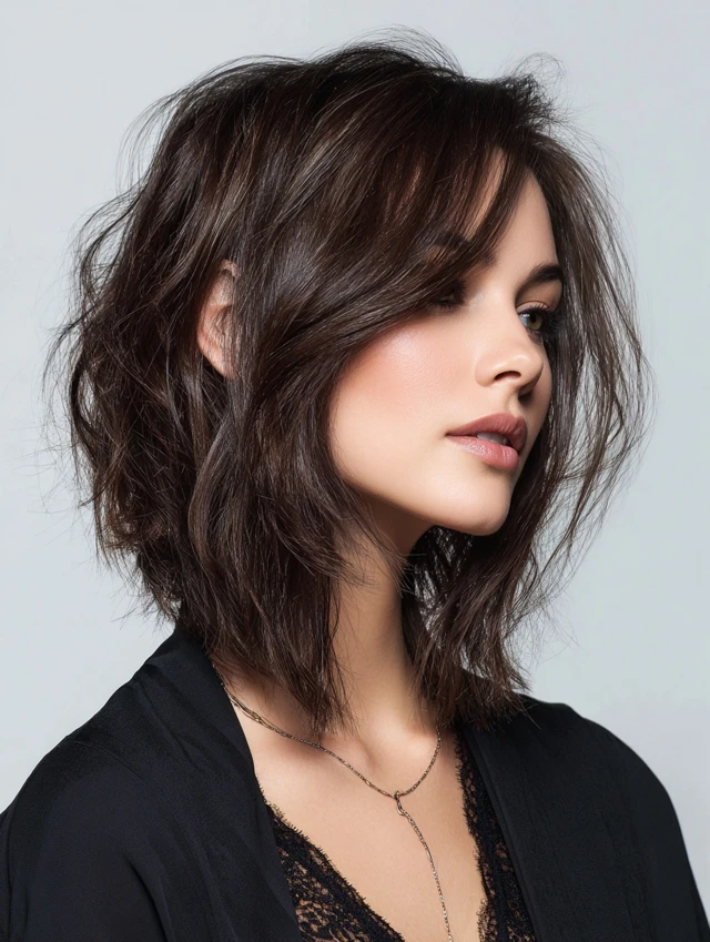 The uneven length slims the face and enhances your features.