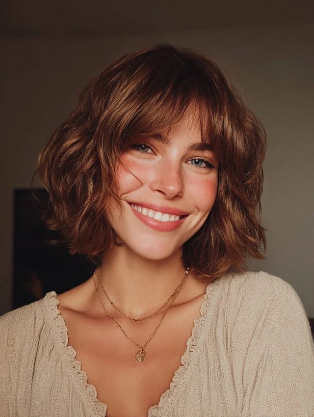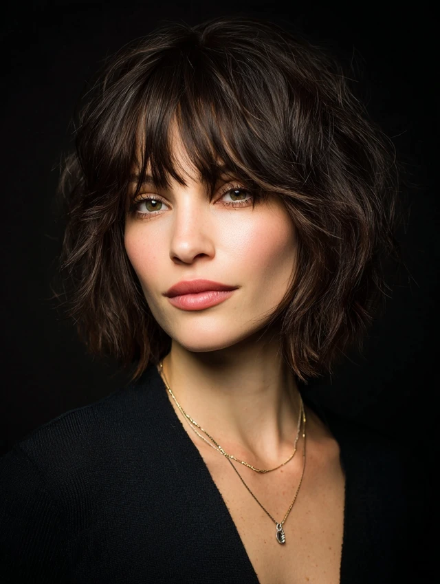 If you love short hairstyles that balance structure and movement, the chin-length bob with bangs is your match made in style heaven. It’s timeless, effortlessly chic, and flatters nearly every face shape. Whether sleek, wavy, layered, or textured, this haircut creates the perfect frame for your face—especially when paired with the right type of fringe.