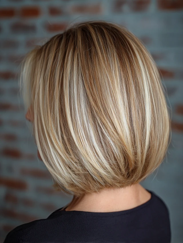 Why it works: On a bob, balayage creates a concentrated burst of dimension rather than a long, gradual fade. The result is bolder, more graphic — every inch of color is visible and every inch is working. It also draws the eye to the ends of the cut, reinforcing the shape of the style.