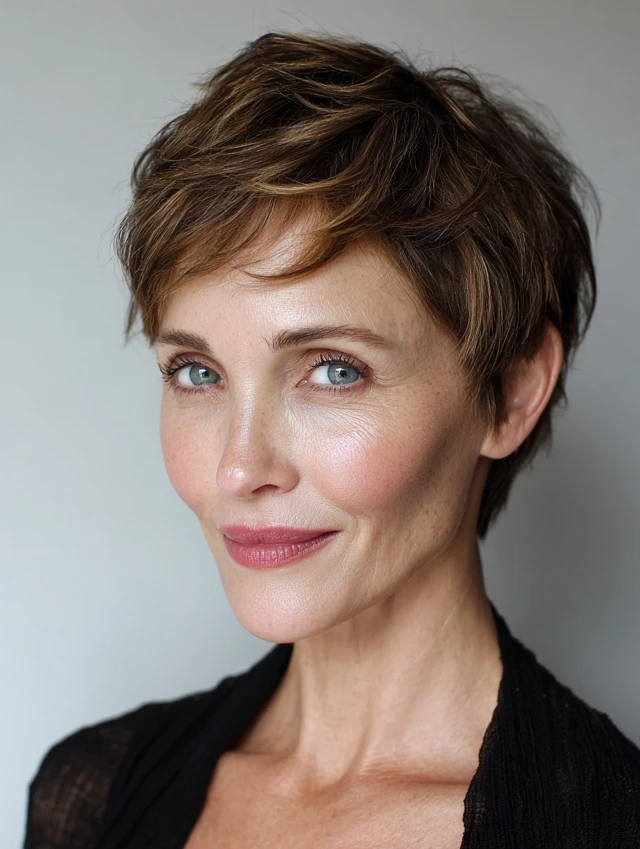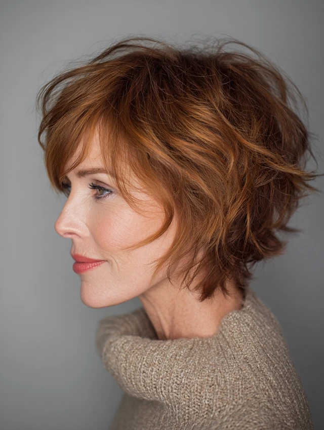 Pixie cut, layered bob, short shag, chin-length bob, or textured crop.