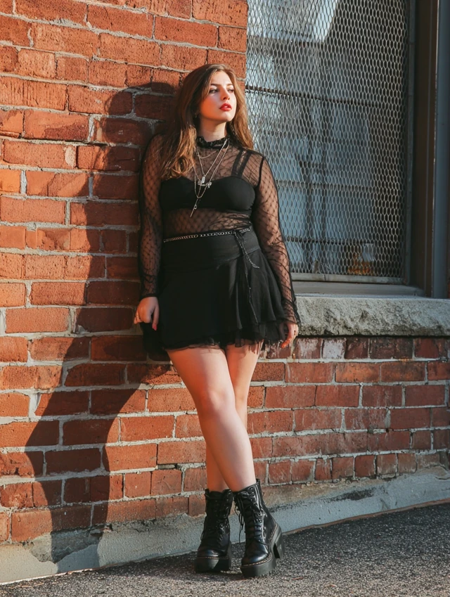 - Tops: Band tees, corset tops, mesh shirts, or oversized hoodies.