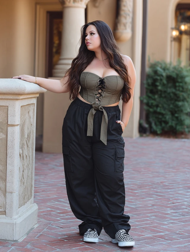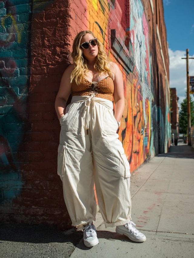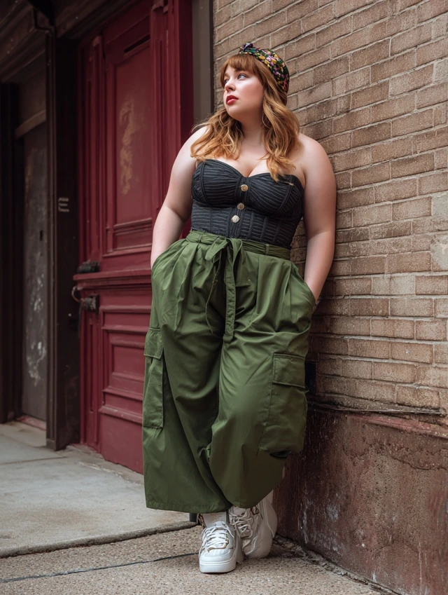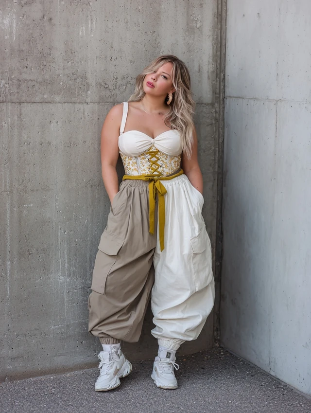 5. Wide-Leg Cargo Pants + Corset Top + Sneakers