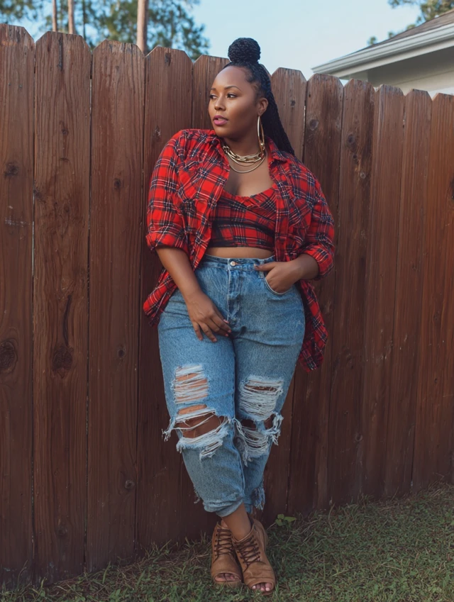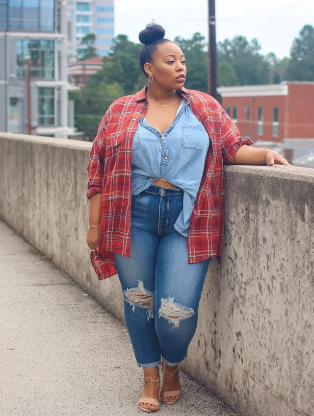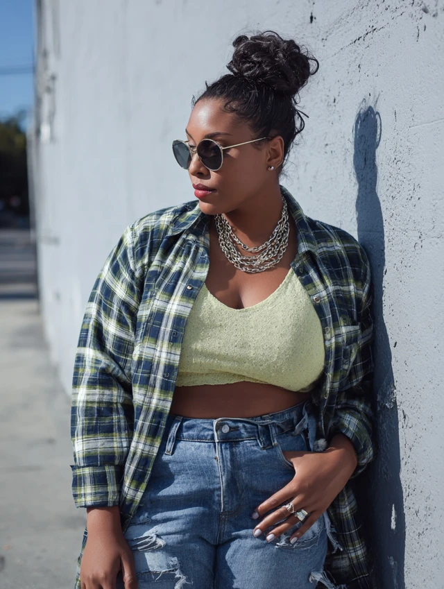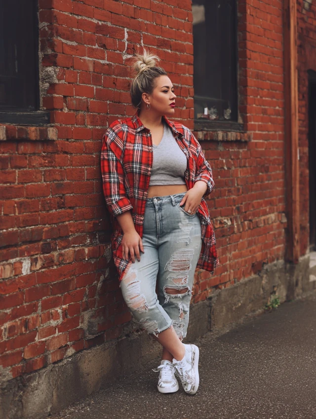 3. Distressed Jeans + Oversized Flannel + Crop Top