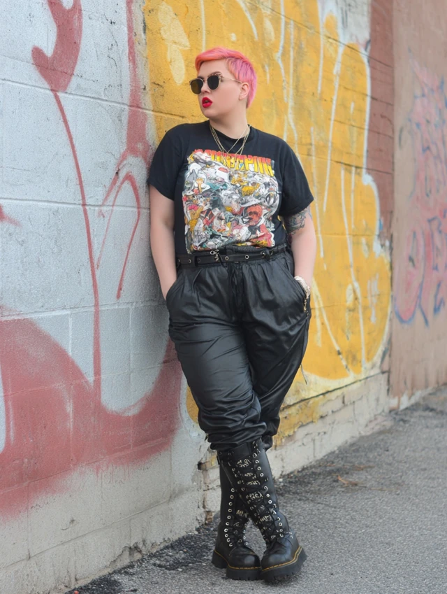 - Footwear: Combat boots, chunky sneakers, or pointed ankle boots.