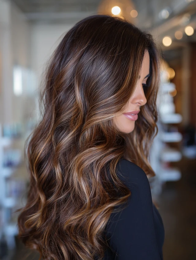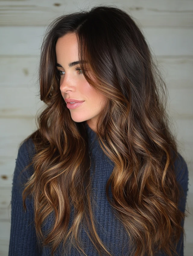 Caramel melts into brunette hair beautifully, adding warmth without going too light. It creates a natural, sunlit glow perfect for the fall season.