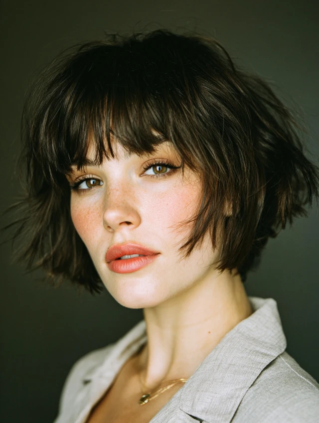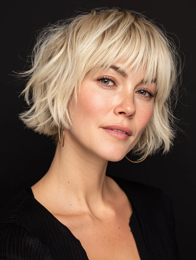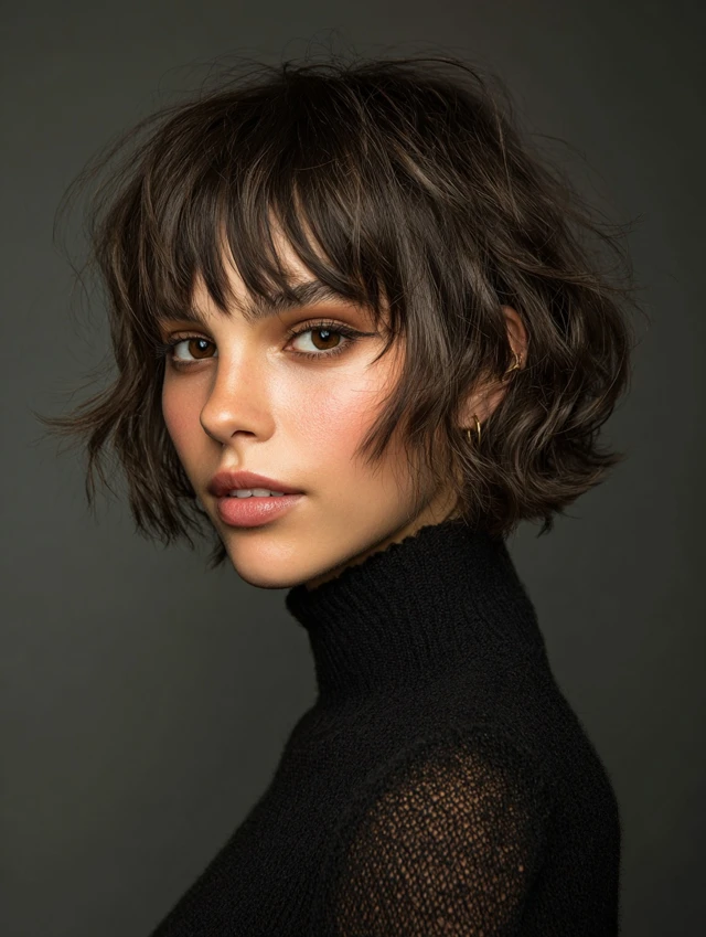 Bangs highlight your eyes and cheekbones, softening facial features.