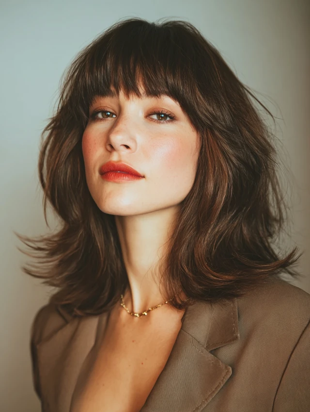 1. Classic Shoulder-Length Feathered Layers with Bangs