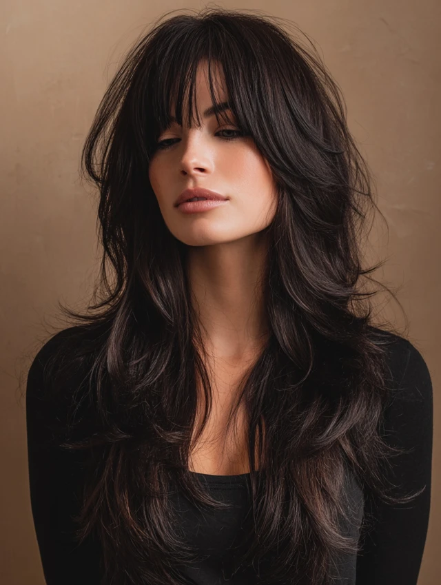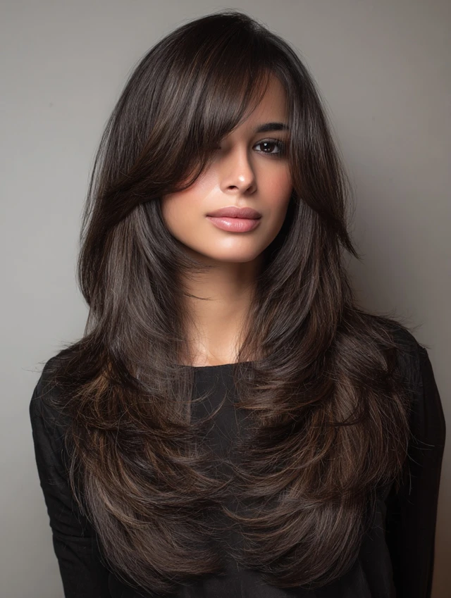 If you want a hairstyle that is stylish, easy to maintain, and frames your face beautifully, feathered layers with bangs are a perfect choice.