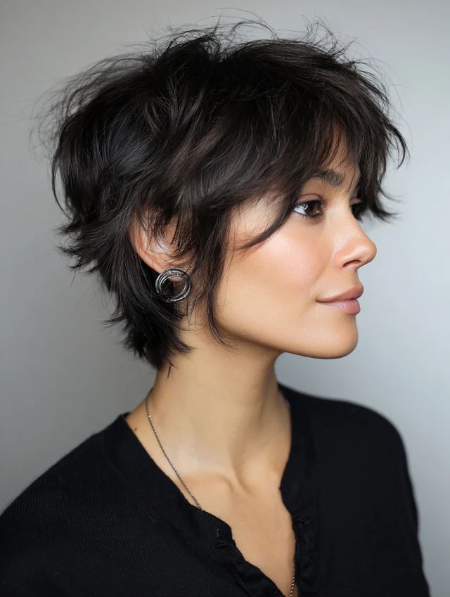 Funky short shag hair is long enough for versatility but light enough to manage — ideal for anyone who wants simple, stylish, no-stress routines with an edgy, modern vibe.