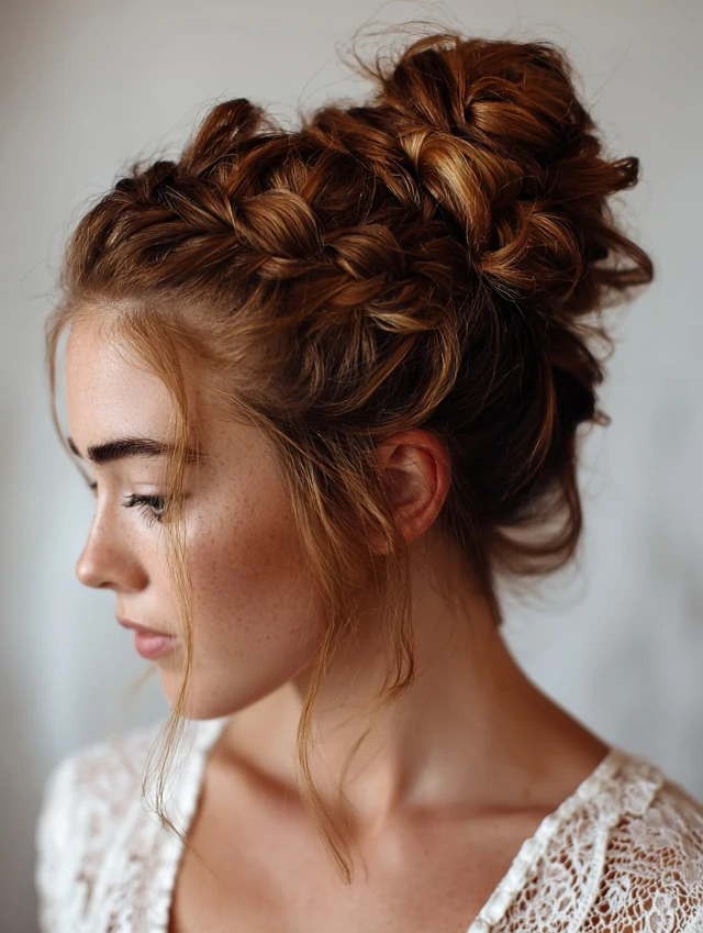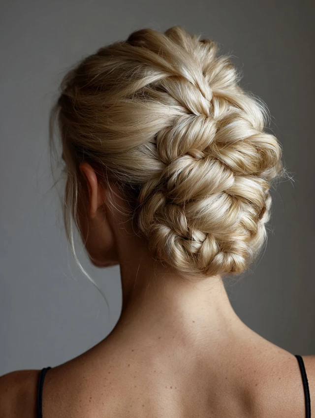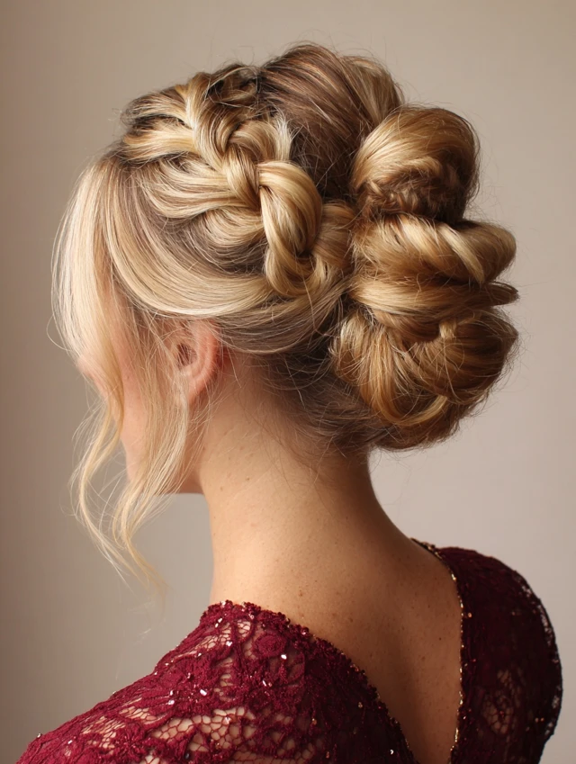 Braids add texture and detail while keeping the bun secure and stylish.
