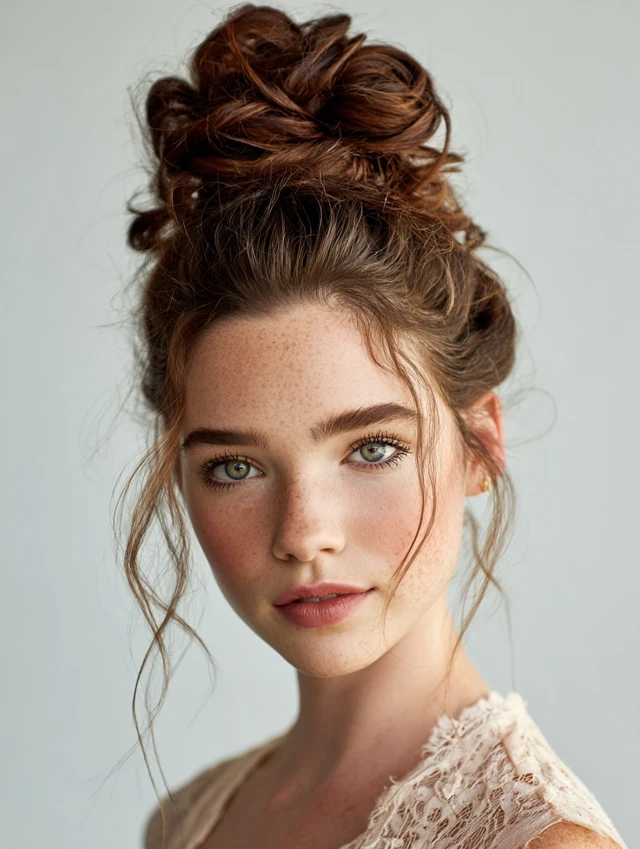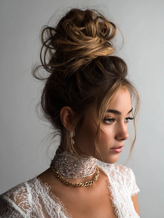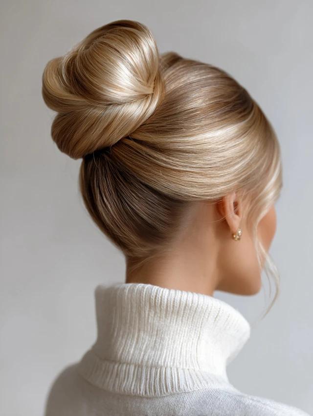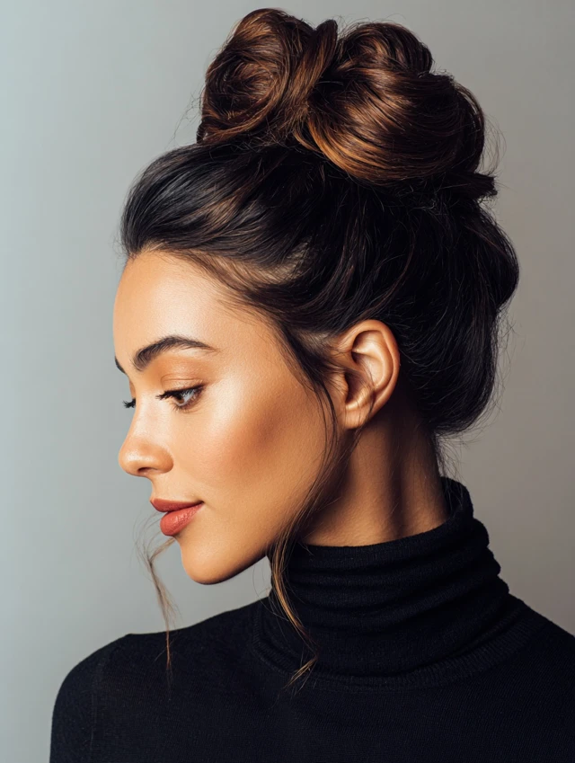 A high bun creates height and sophistication while keeping hair neatly styled.