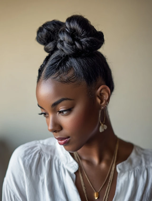 Bun hairstyles are long enough for creativity but secure enough to manage — ideal for guests who want simple, stylish, no-stress routines.