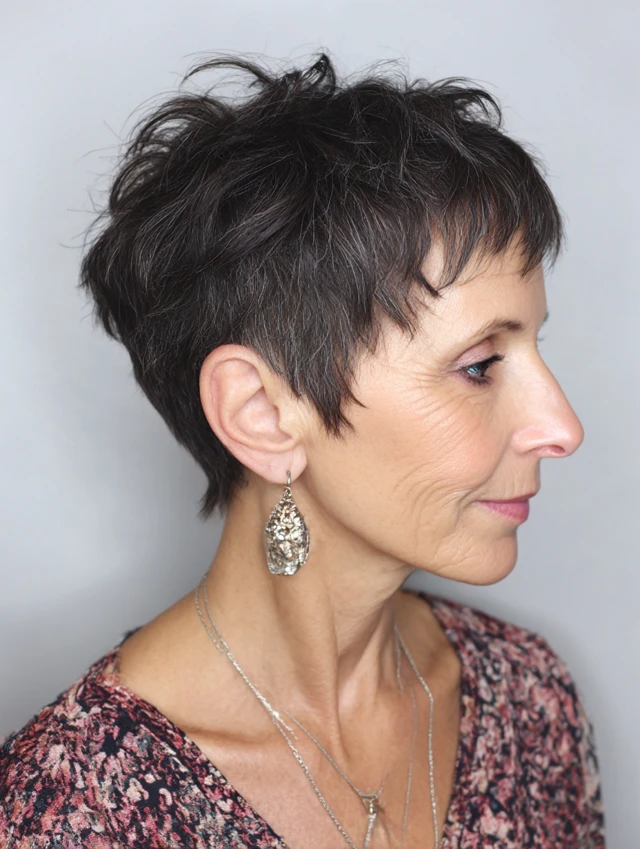 A pixie cut is one of the most liberating choices for fine-haired women over 50. By removing length, you remove the weight that pulls fine hair flat. What’s left is full-looking, root-lifted hair that styles easily and dries quickly.