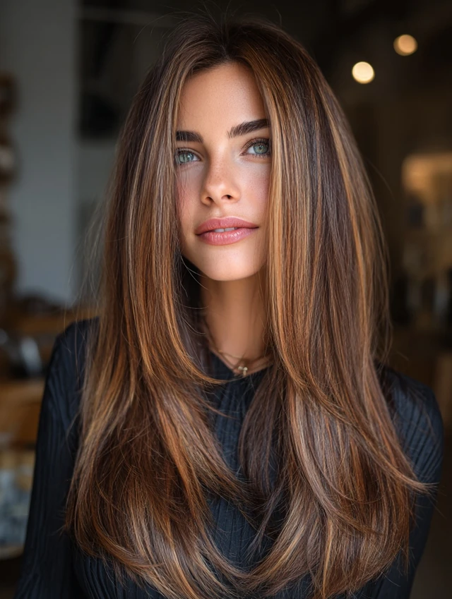 Highlights for straight brown hair are a perfect way to add depth, brightness, and movement to a smooth, sleek texture. Because straight hair reflects light evenly, highlights show up clearly, creating a polished and dimensional finish.