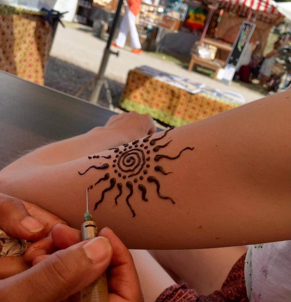 This lace-inspired tattoo takes a different approach with a bold sun spiral. Radiating lines extend outward, creating a tribal-meets-lace effect. The simple structure makes it symbolic, representing energy, vitality, and warmth.