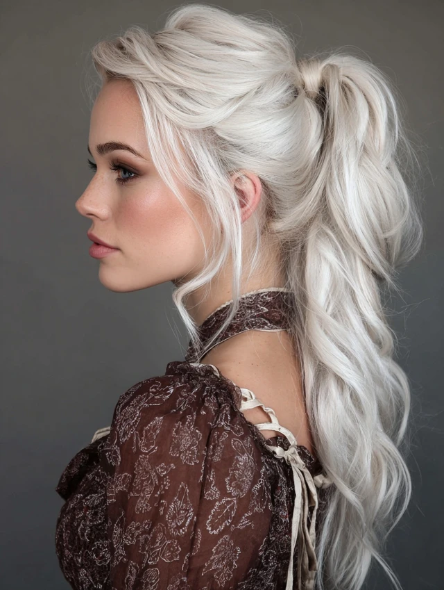 Straight, wavy, or slightly curled hair enhances the laced effect.