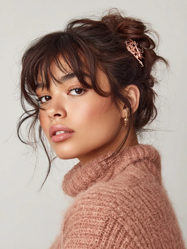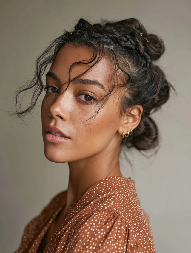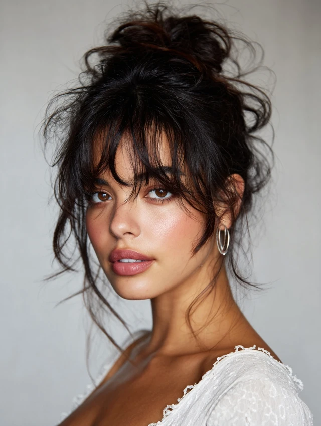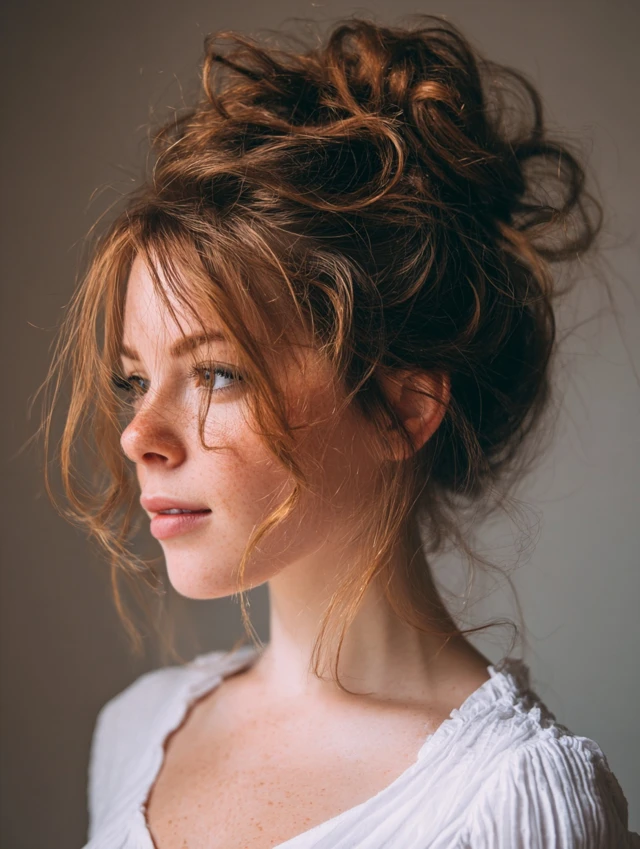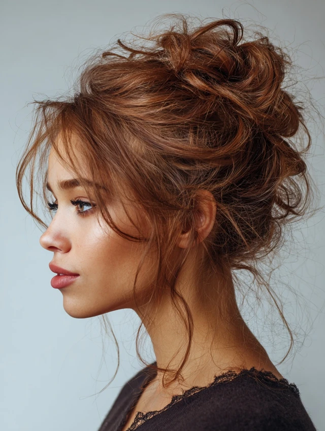2. Messy Bun with Soft Tendrils