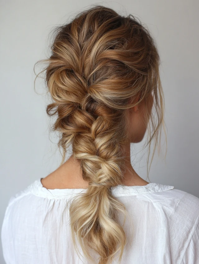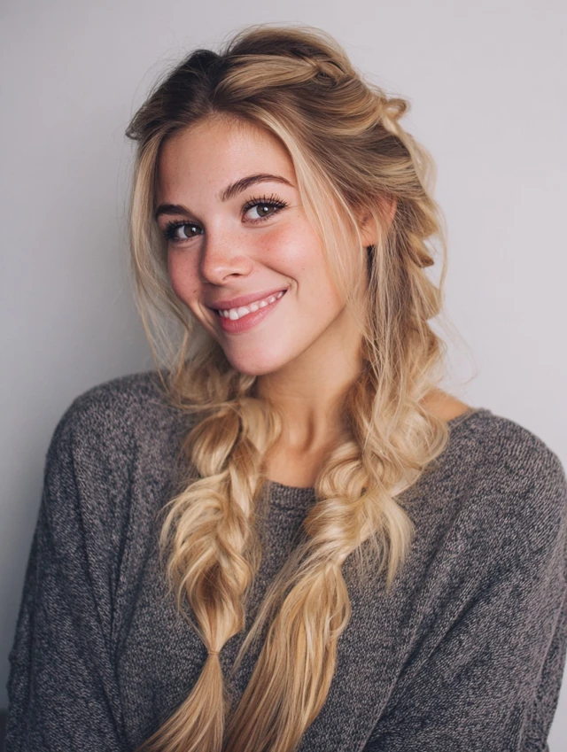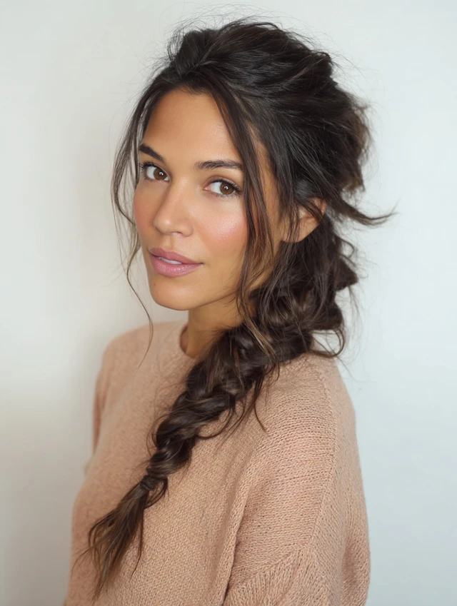 A loose, low braid looks relaxed and feminine — ideal for lazy days when you still want to look put together.
