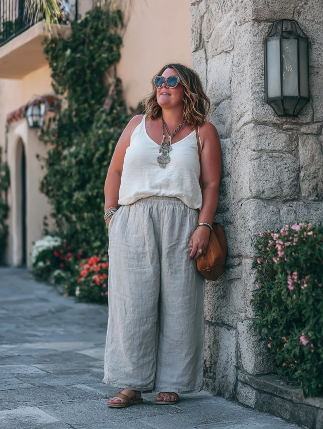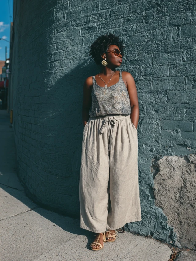 1. Linen Wide-Leg Pants + Tank Top + Sandals