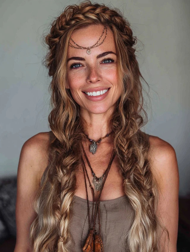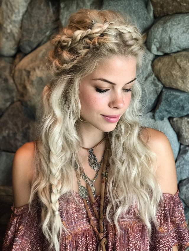 Why It Works: Intricate yet relaxed, perfect for boho-chic weddings.