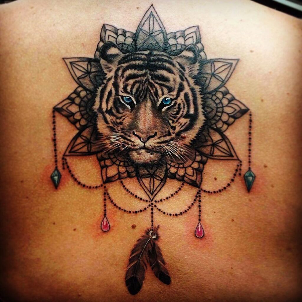 Tiger-Eyed Mandala Dreamcatcher Tattoo
