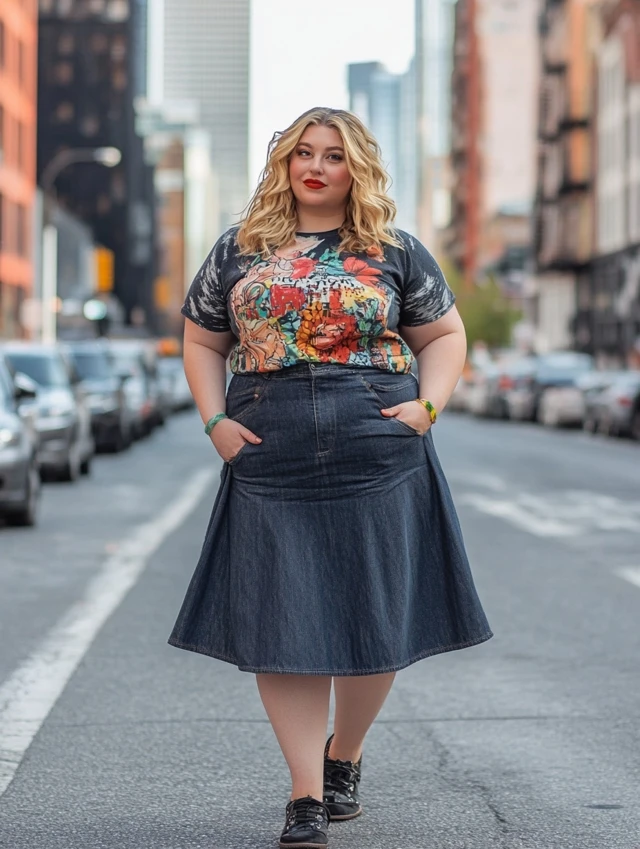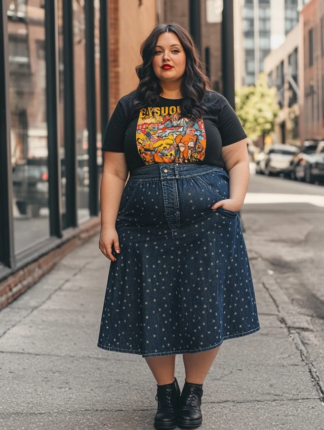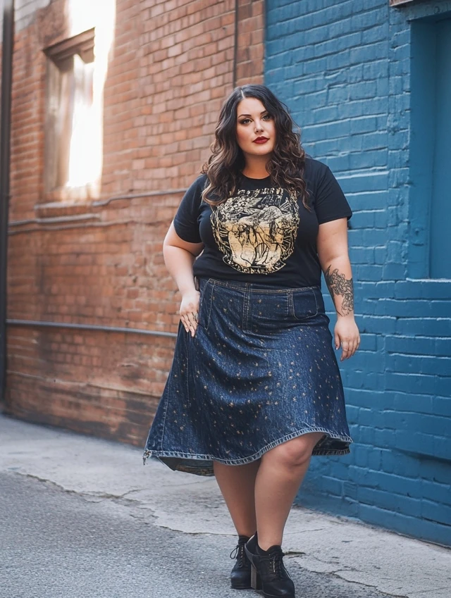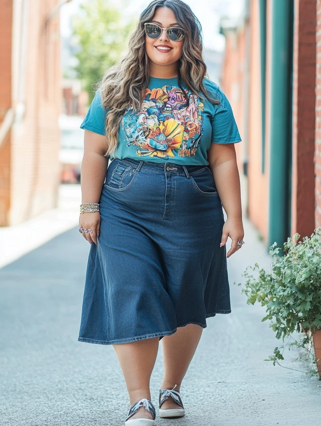 7. Denim Midi Skirt + Graphic Tee