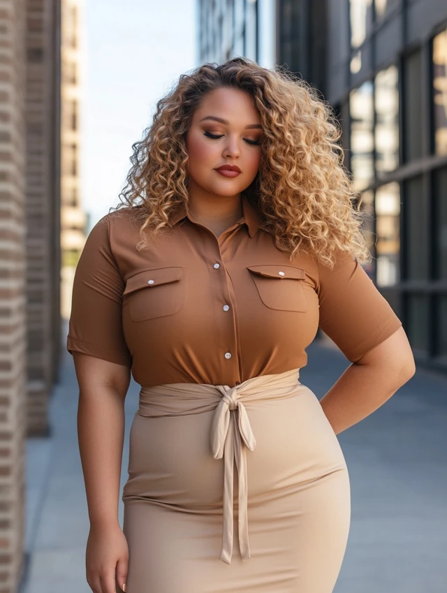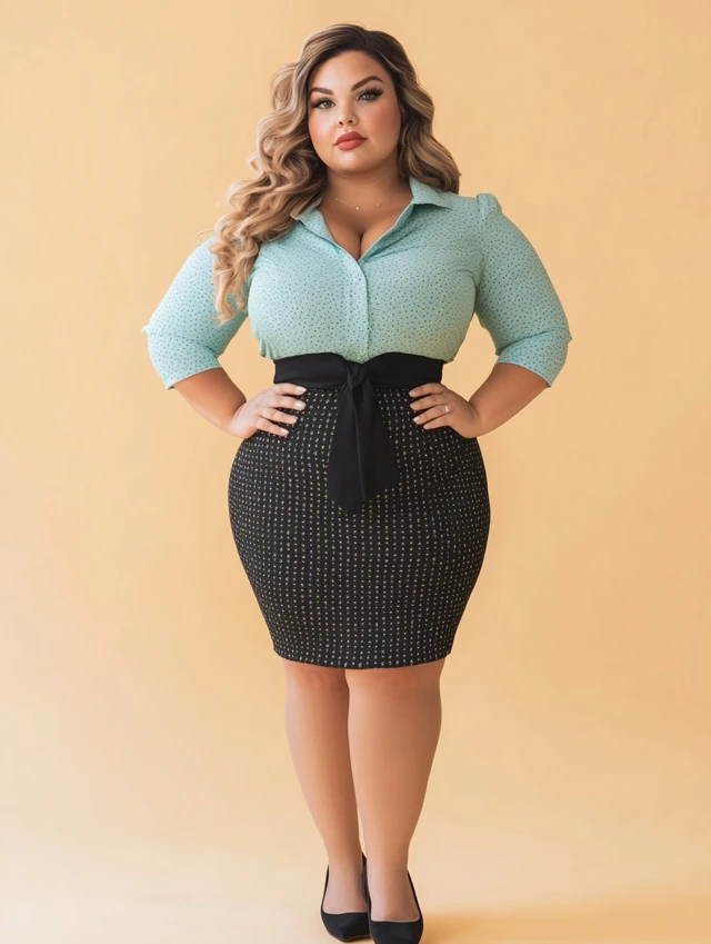 Why it works: Combines structure and softness. Tie-front adds detail, while the skirt hugs curves.