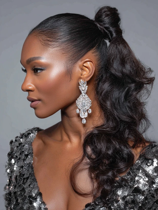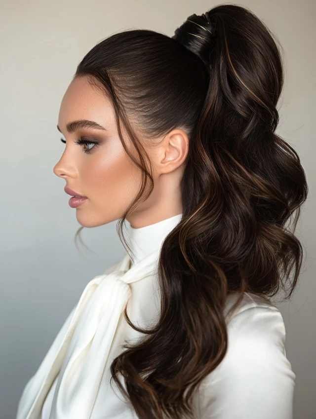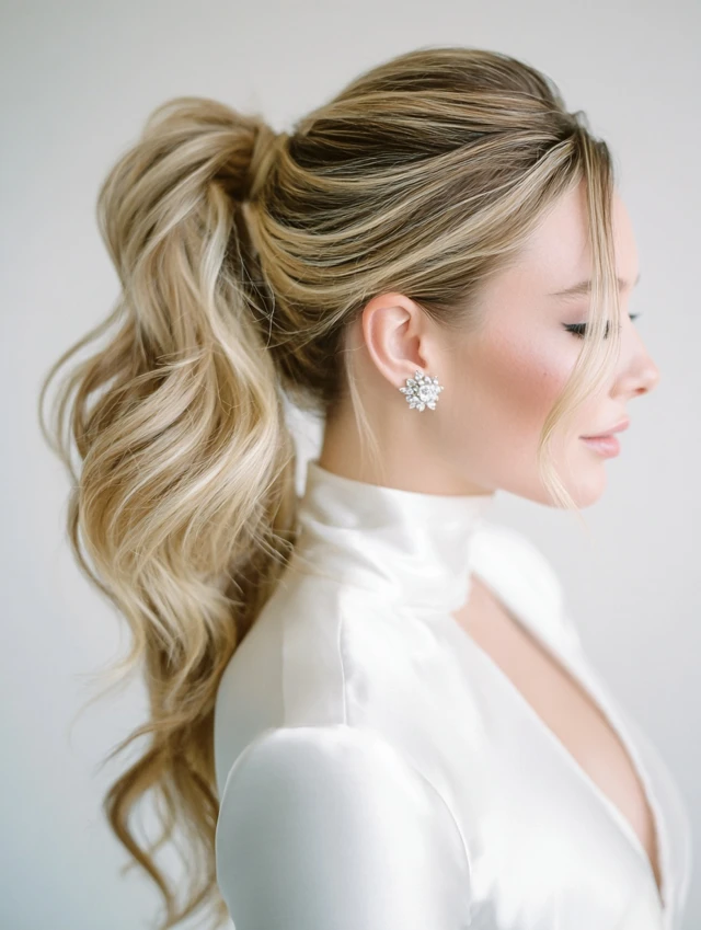 A high ponytail adds height, elegance, and a modern touch.