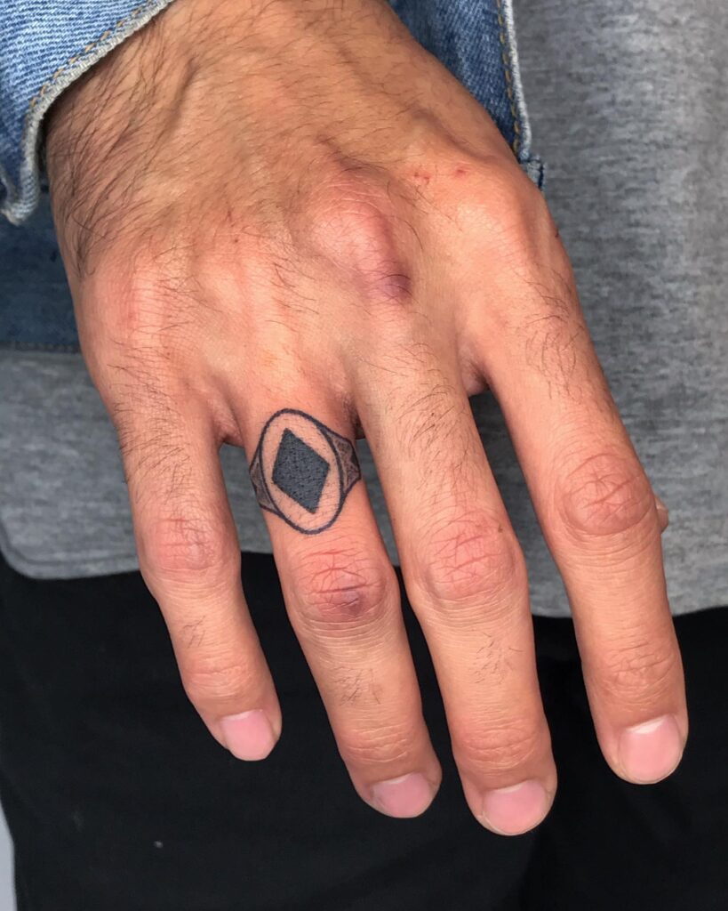 10. Geometric Diamond Ring Tattoo