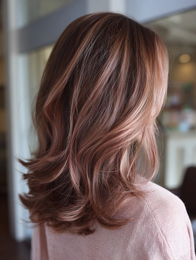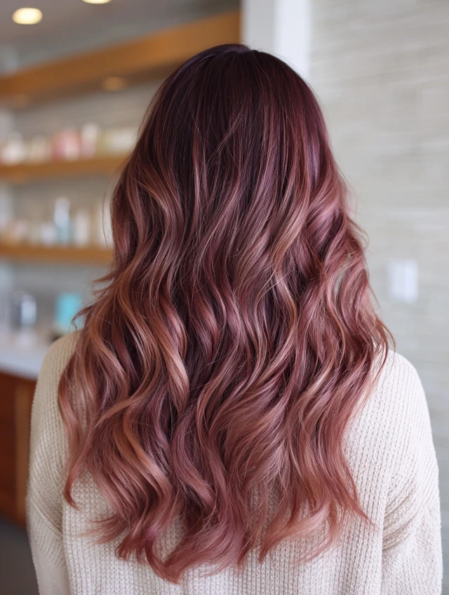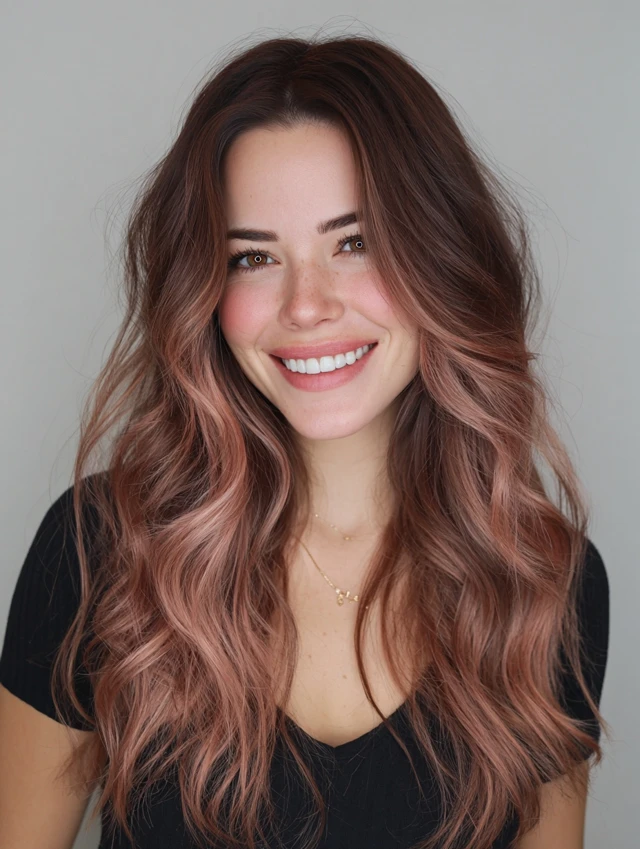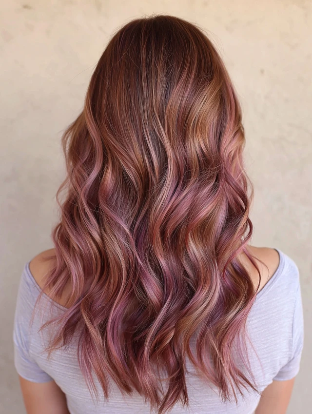 Rose brunette balayage is perfect for anyone who wants to add a soft, modern twist to brunette hair. The blend of pink tones with rich brown creates a unique, dimensional look that feels both elegant and playful.