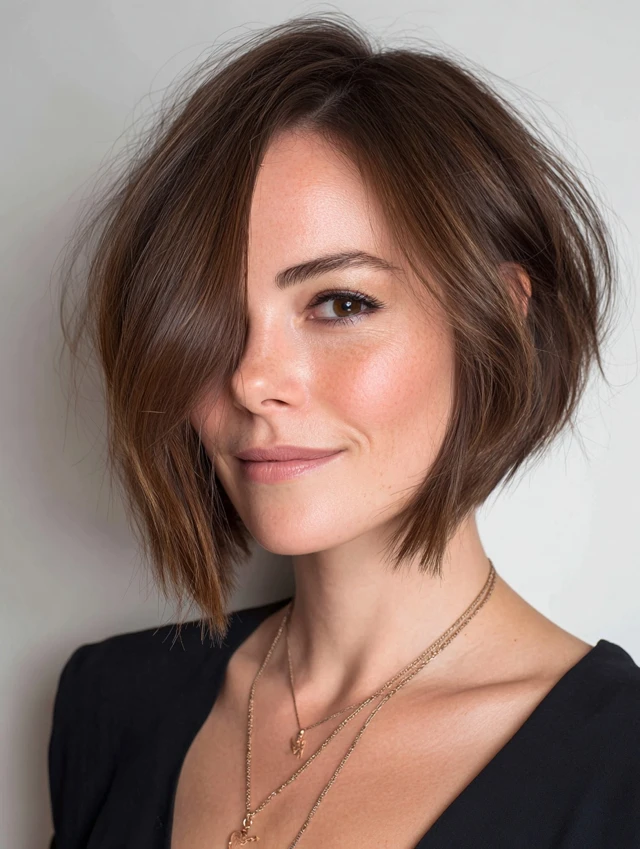 Asymmetrical bob, layered bob, angled bob, textured bob, or chin-length bob.