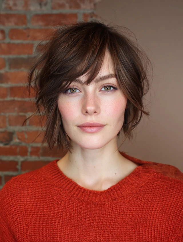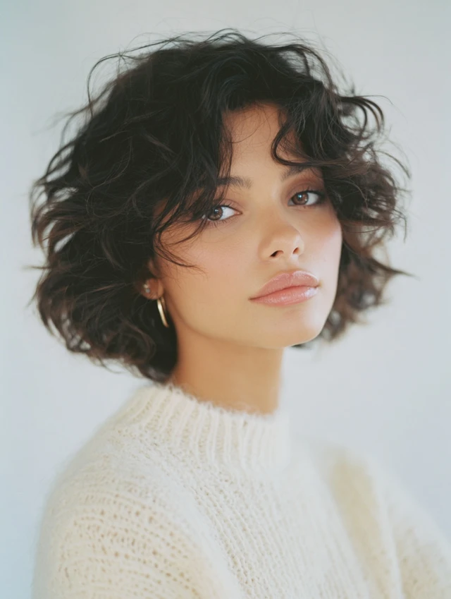 Soft texture breaks up strong angles and adds movement around the jawline.