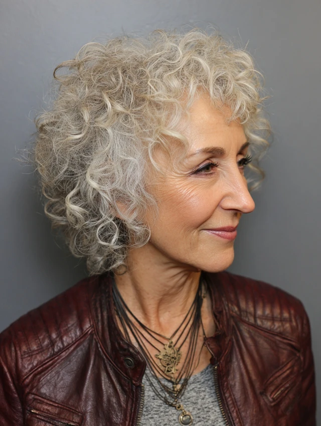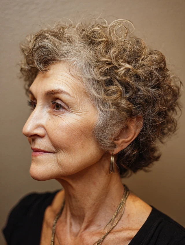 Short curly hair is long enough for versatile styling but light enough to manage — ideal for older women who want simple, stylish, no-stress routines.