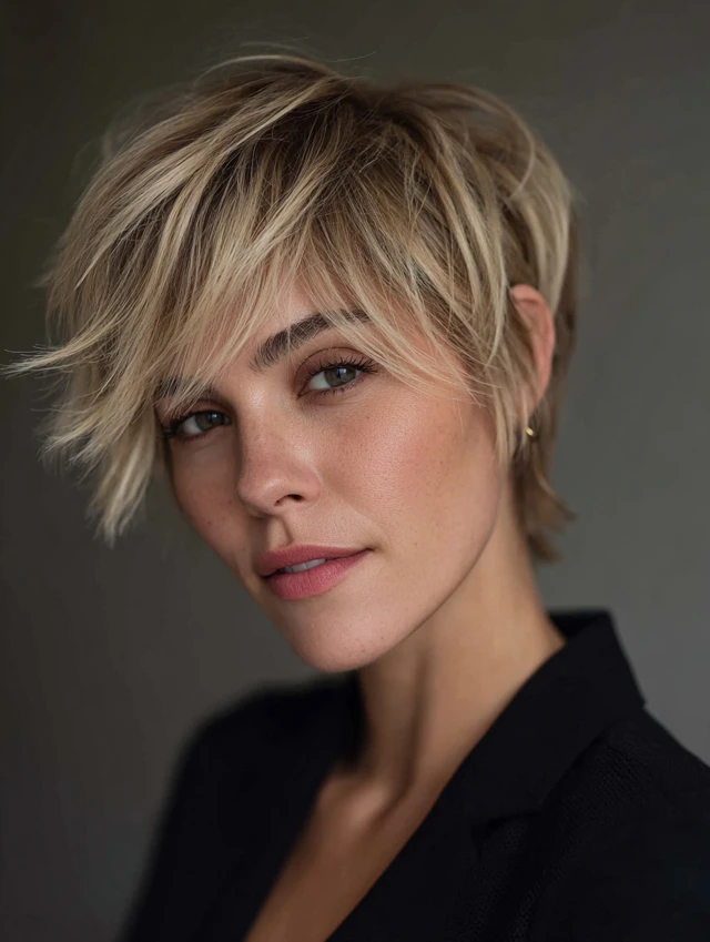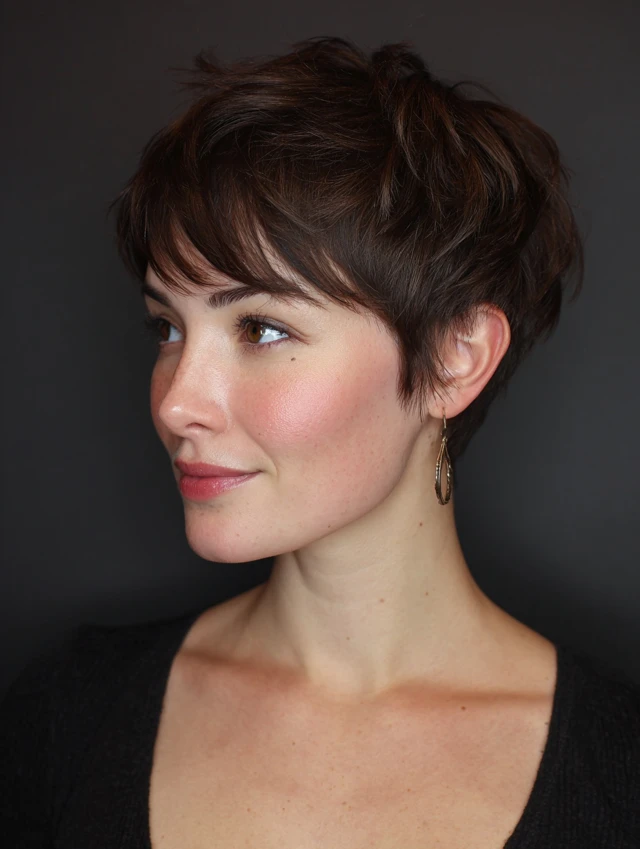 A lightweight, airy pixie that highlights facial features while keeping styling simple.