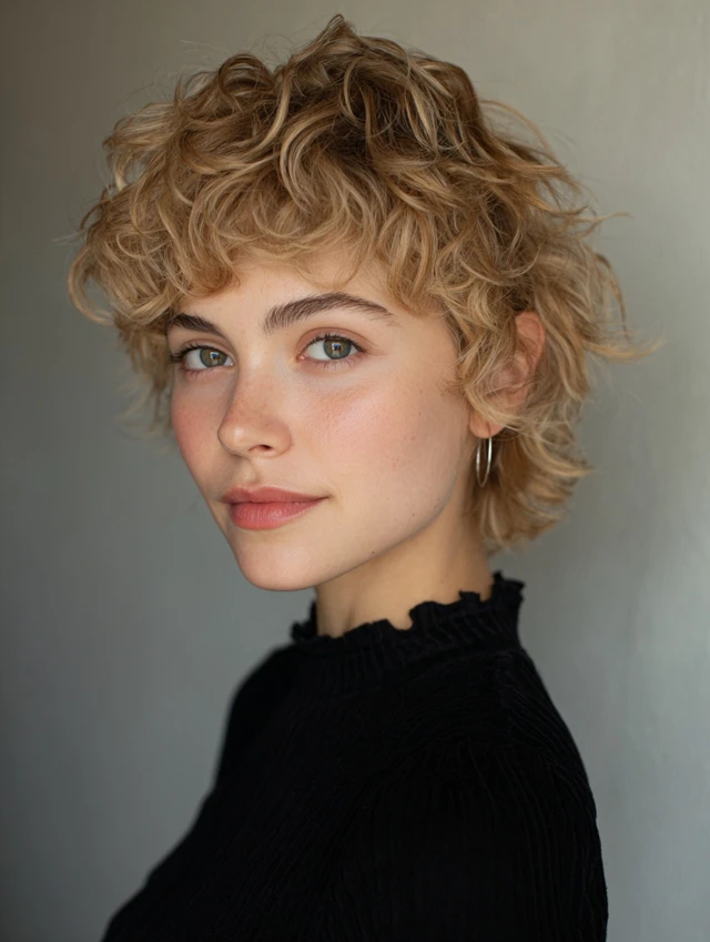 5. Curly Feathered Short Hair