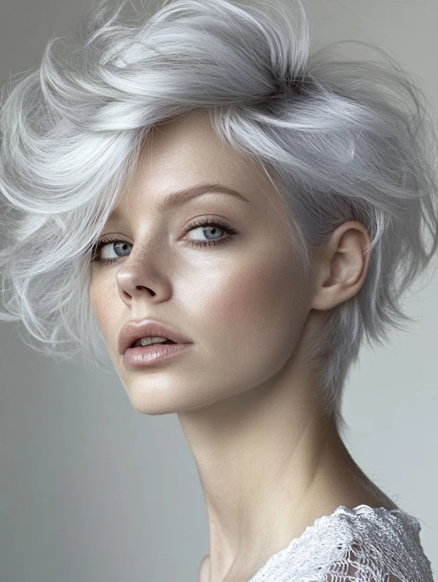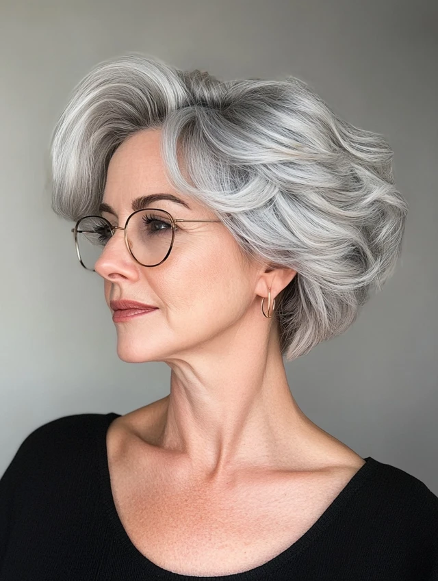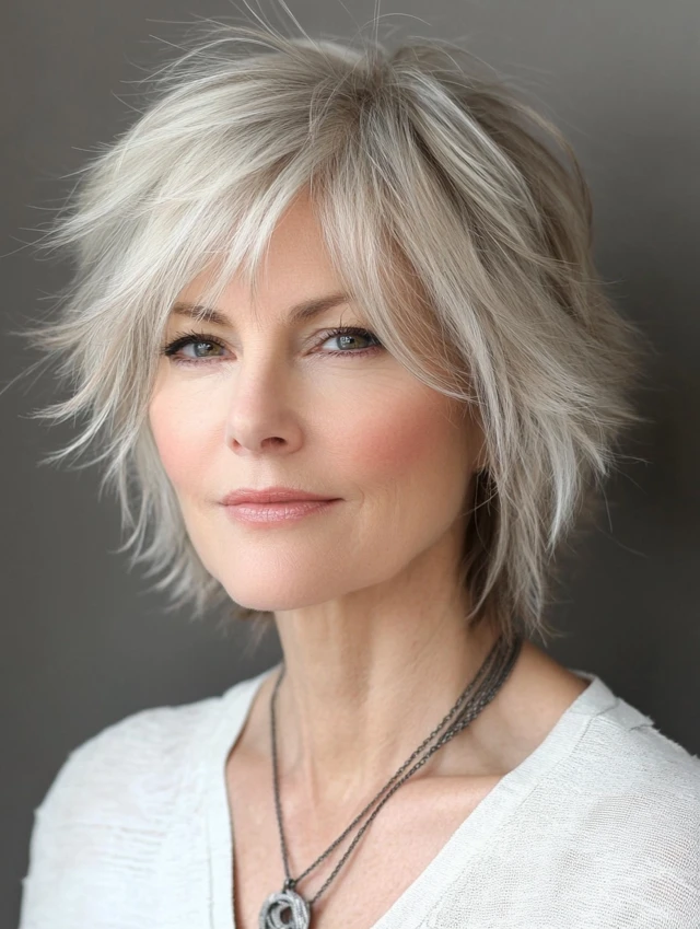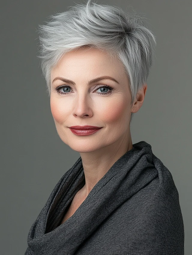 Embrace your gray and make it the centerpiece. A silver crop with volume at the crown gives structure and confidence.