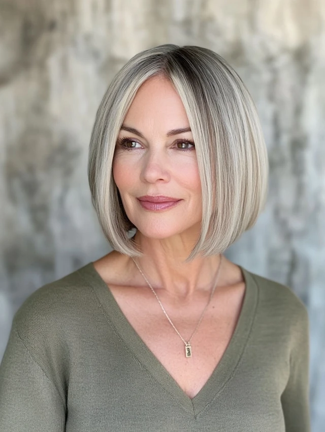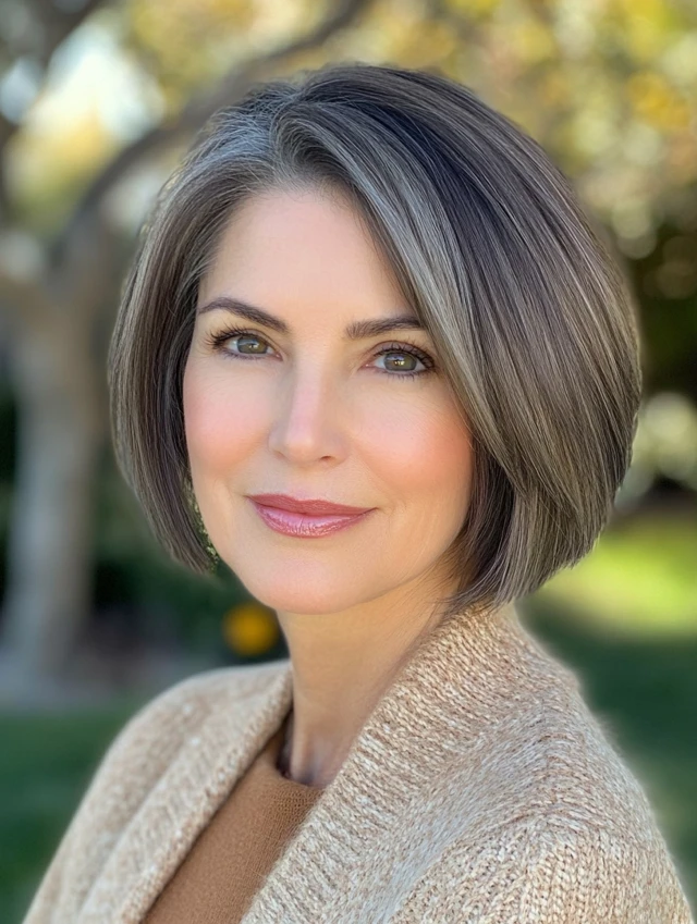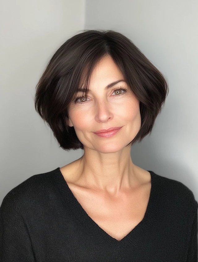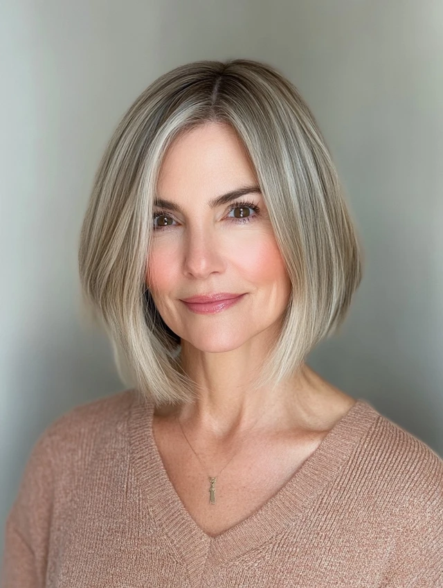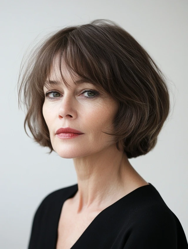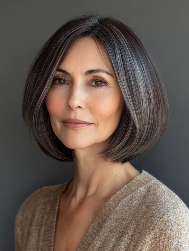 A clean bob cut straight at the chin is both modern and ageless. It enhances jawline definition and works beautifully with straight or wavy hair.