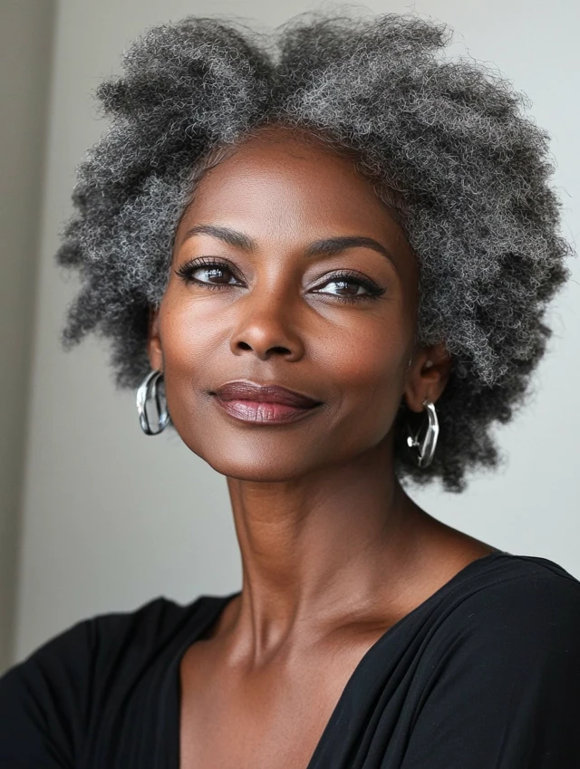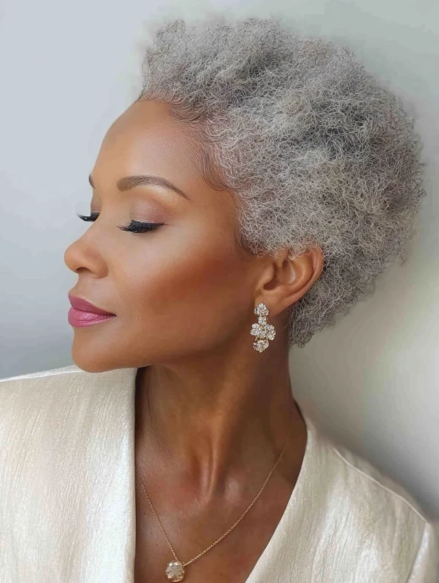 A salt-and-pepper pixie can be luminous. A cropped afro in silver is regal. Fine hair gains structure with a jaw-length bob. Coarse waves look intentional when shaped to flow around the face.