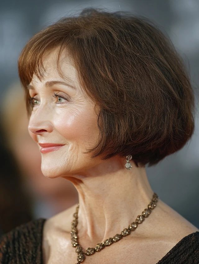 A layered bob sits perfectly around the jawline, creating a graceful frame that brightens the face. It’s youthful without trying too hard.