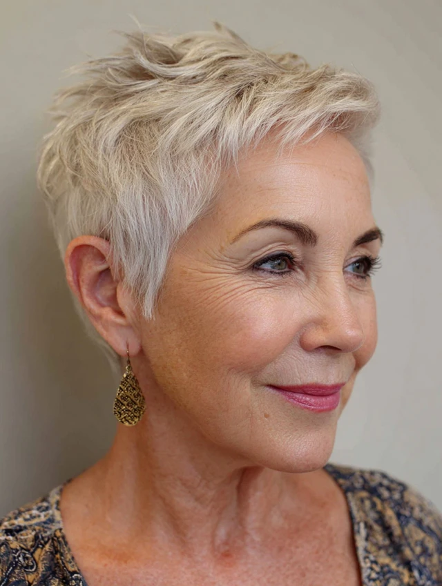 - It Flatters Natural Texture: Silver, white, or soft-toned hair looks radiant in short cuts.