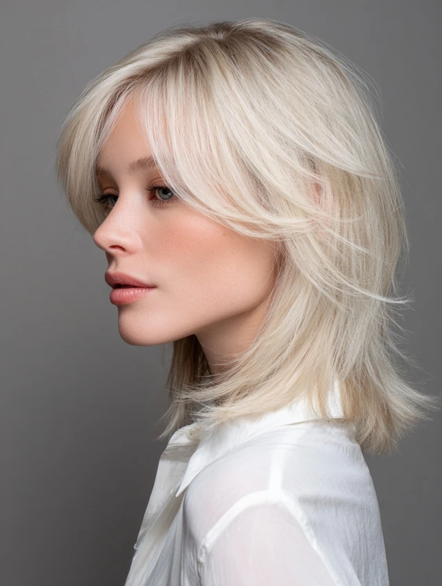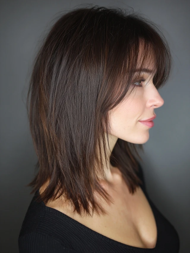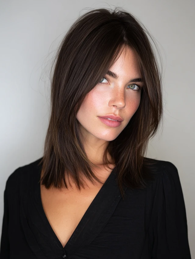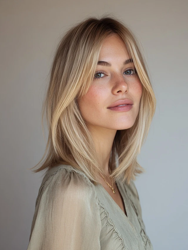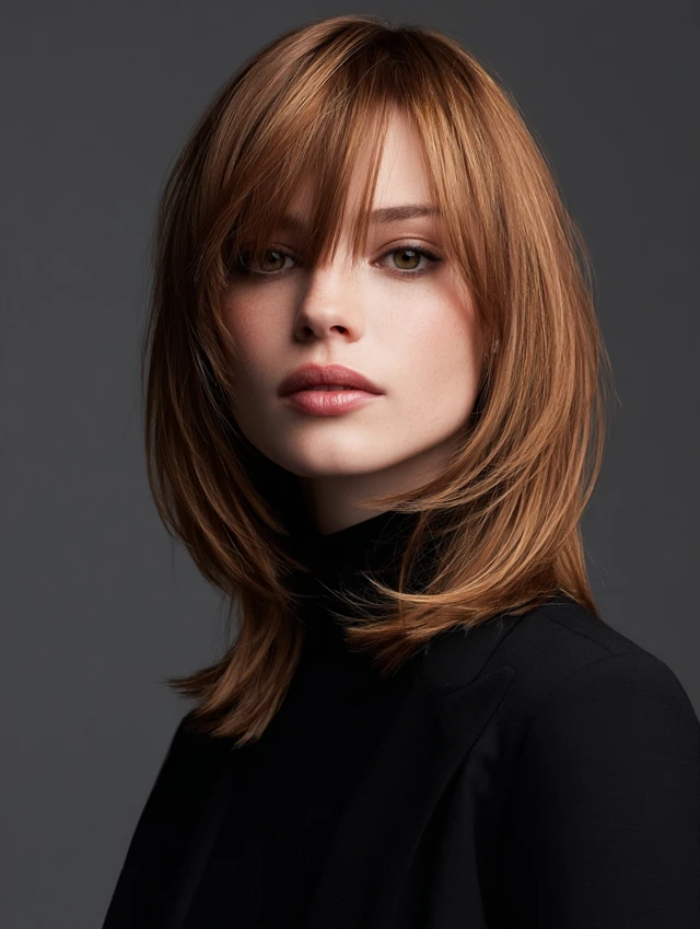 Blunt bob, layered shoulder-length cut, U-cut ends, textured lob, or soft layers.