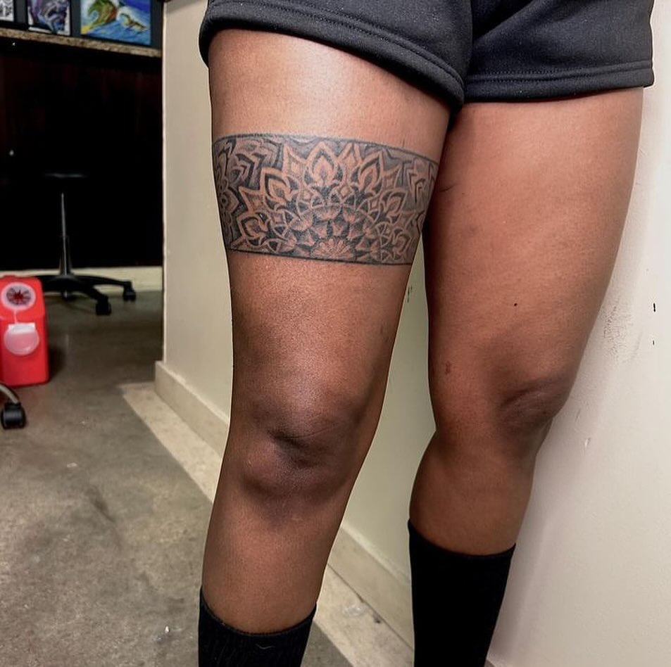 2. Mandala-Inspired Thigh Band Tattoo