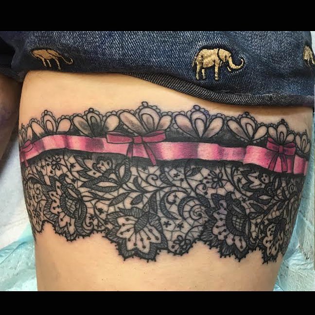 15. Lace Garter Thigh Band Tattoo