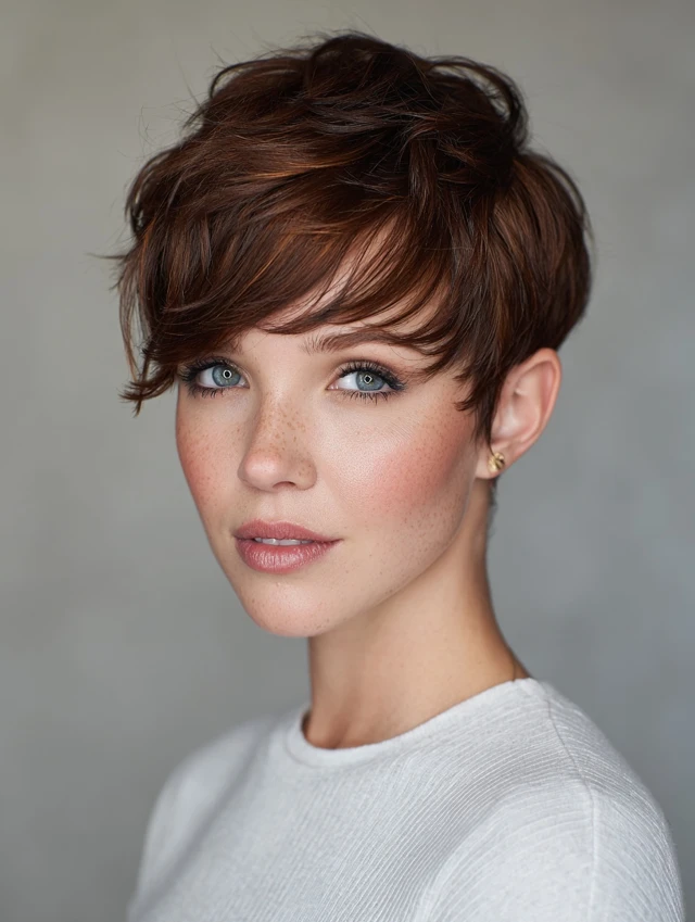 If you want a short haircut that feels playful yet elegant, this is a perfect choice.