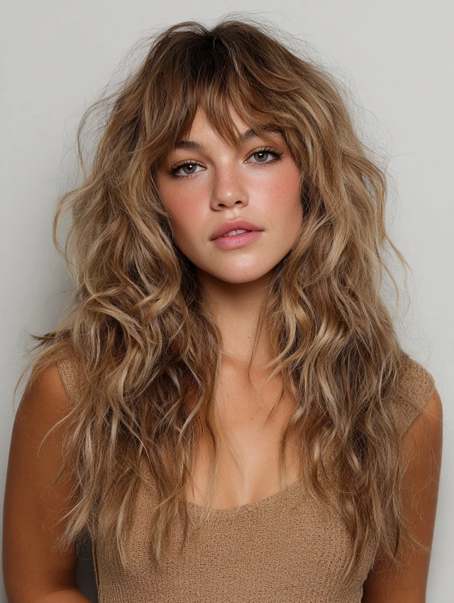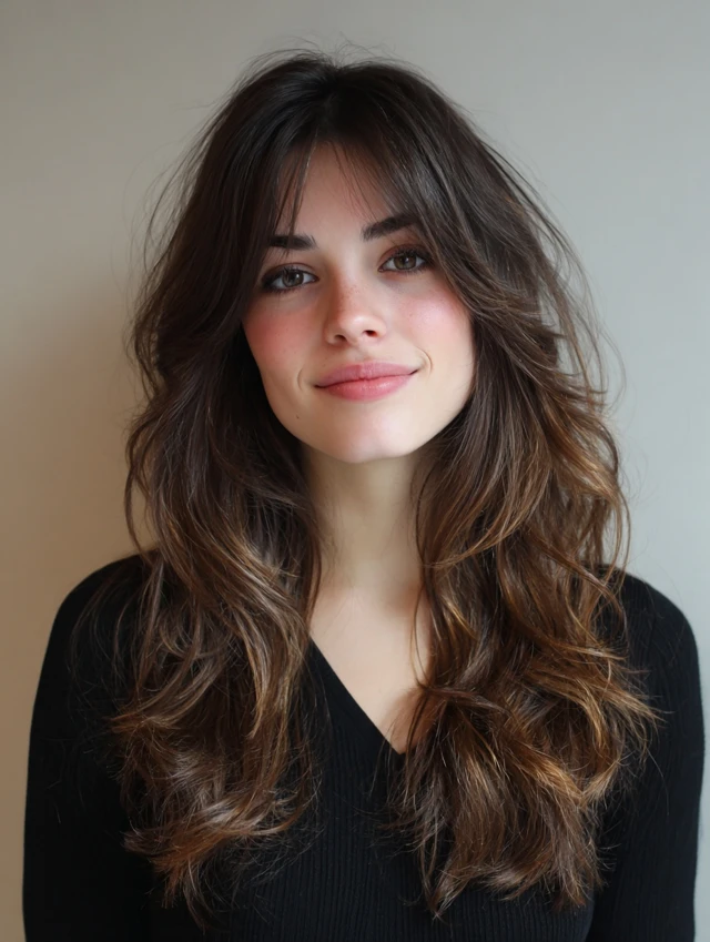 Long layers enhance natural waves or curls, creating flowing, free-spirited movement.