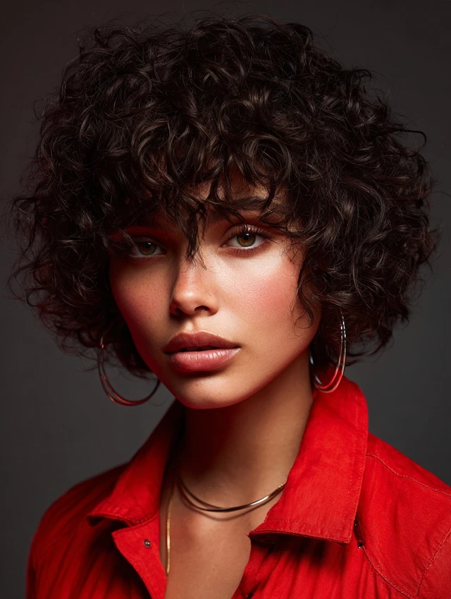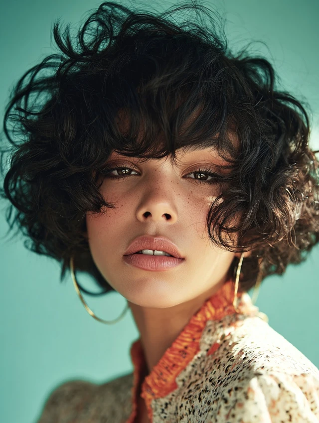 A short bob with defined natural curls adds structure while celebrating hair’s natural shape.