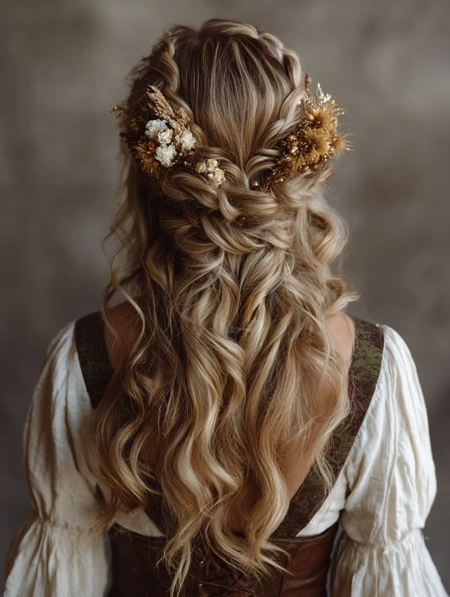 Half-up styles enhance volume while keeping a relaxed, free-spirited vibe.